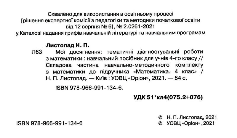 Замовляйте збірник "Мої досягнення. Тематичні перевірні роботи з математики 4 клас НУШ Листопад Н. Оріон" на сайті knigovo.org.ua та забезпечте своєму школяру впевненість в своїх знаннях!
