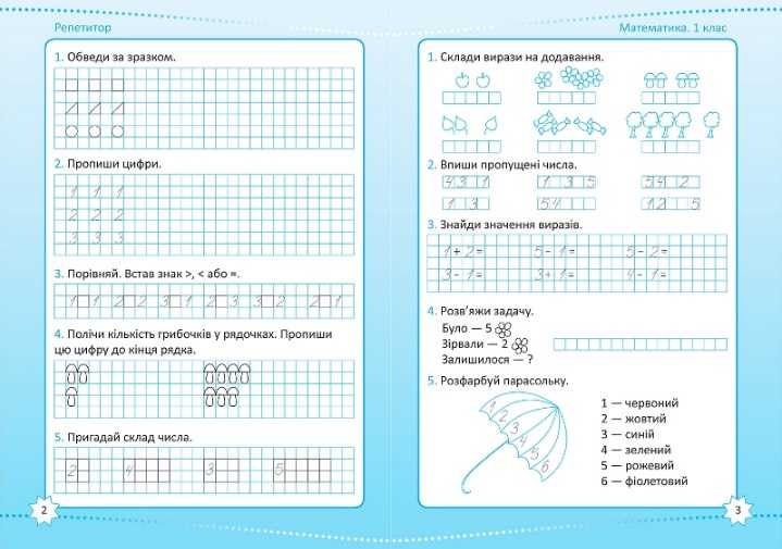 Репетитор Математика 1 клас НУШ Шевченко К. Торсінг. Посібник призначений для самостійної роботи учнів 1 класу. Він містить завдання, що сприяють виробленню математичних навичок; удосконаленню усного рахування і вміння розв`язувати задачі.