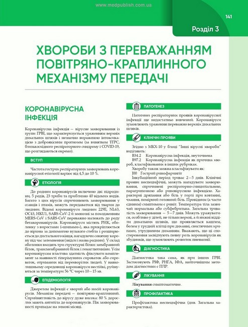 У підручнику викладено сучасні уявлення про найпоширеніші інфекційні й паразитарні хвороби. Особливу увагу приділено новим хворобам: коронавірусній (COVID-19) і віспі мавп, а також тим захворюванням, які трапляються на території України, хворобам, що загрожують світовій безпеці і підлягають регуляції Міжнародними медико-санітарними правилами 2005 року, інфекційним і паразитарним хворобам, які можуть бути завезені на територію нашої країни і є предметом медицини подорожей і тропічної медицини. Висвітлено загальні питання інфектології, принципи класифікації інфекційних хвороб, діагностики, лікування і профілактики, у тому числі імунопрофілактики.