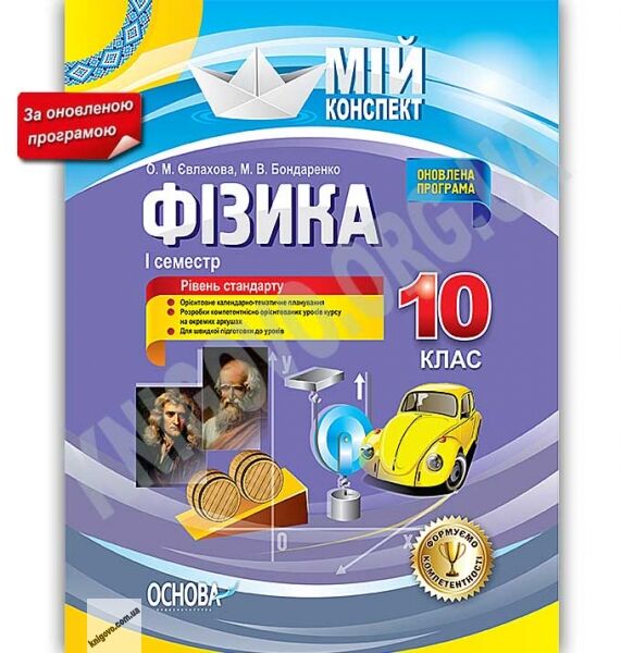 Мій конспект Фізика 10 клас I семестр Рівень стандарту Оновлена програма Авт: Євлахова О. Вид: Основа 16336