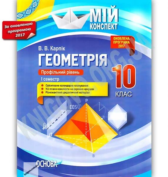 Мій конспект Геометрія 10 клас Оновлена програма 2017 Профільний рівень I семестр Авт: Карпік В. Вид: Основа 19552