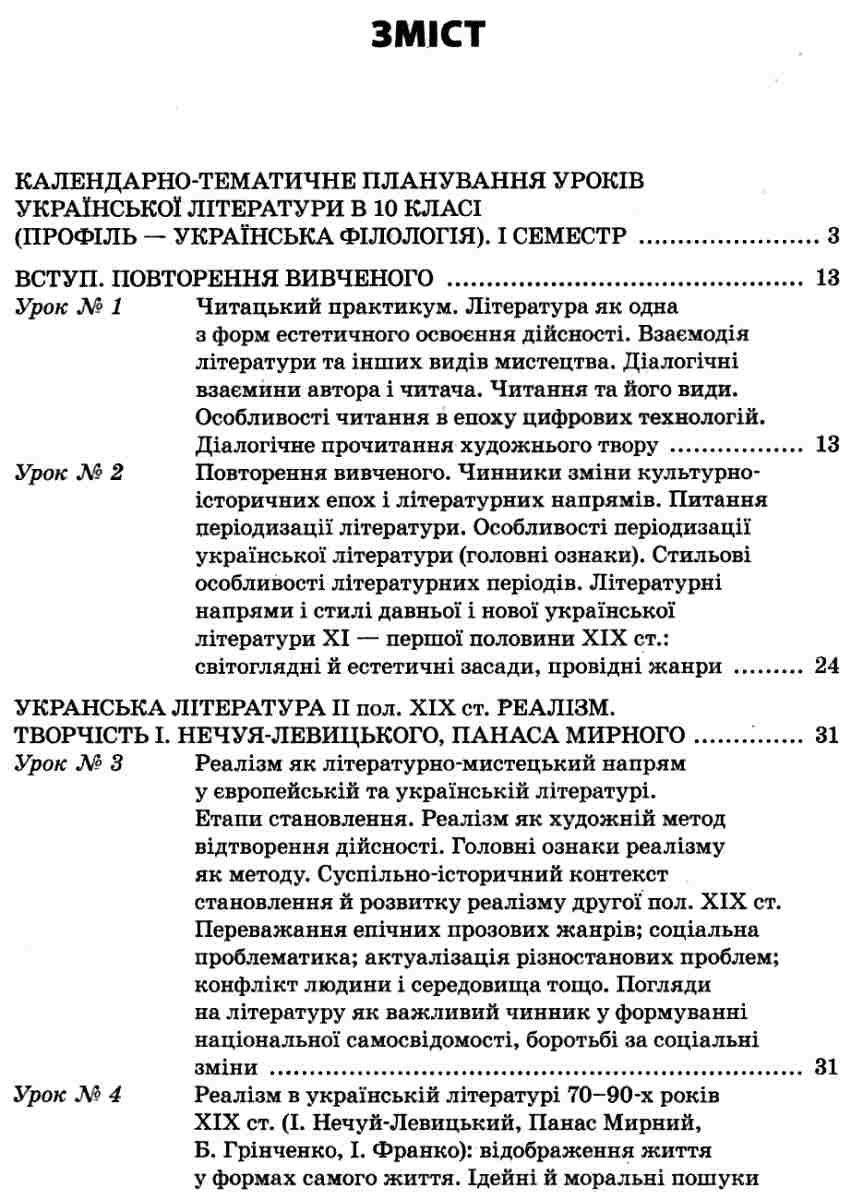 Усі уроки української літератури 10 клас І семестр Профіль українська філологія Програма 2018 Косогова О. Основа 20957