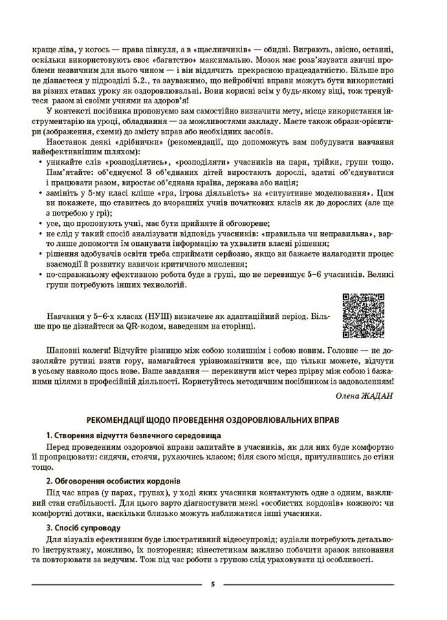 У посібнику зібрано матеріали до уроків нового інтегрованого курсу «Здоров’я, безпека, та добробут» — готові вправи та методичні поради до п’яти модельних програм НУШ, рекомендованих Міністерством освіти і науки України. Посібник допоможе вчителям швидко визнaчити: • Скільки чaсу буде витрачено на підгoтoвку уроку? • Які мaтеріaли, oблaднaння потрібно підгoтувaти? • Що підгoтувaти зaздaлегідь? • На що орієнтувати здобувачів освіти після завершення діяльності, на етапі формулювання висновків, ставлень?
