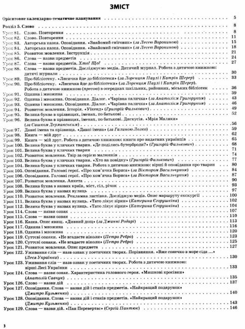 Розподіл годин і тематика уроків відповідають змісту підручника О. І. Большакової, М. С. Пристінської (Українська мова та читання : підруч. для 2 кл. закл. загал. серед. освіти (у 2-х ч.) : Ч. 2.— Х. : Вид-во «Ранок», 2019).