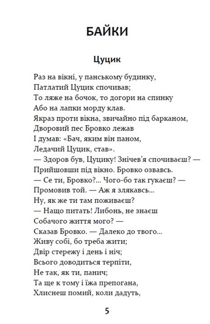 Байки Леоніда Глібова сповнені афористичності й глибокої мудрості. Мораль у кожній байці звучить яскраво і переконливо, а головні герої є уособленням розуму чи нерозважливості, кмітливості чи наївності. Традиційні теми — соціальна несправедливість, працьовитість і ледарство, правда і обман, добро і зло — взагалі є центральними у творах Глібова. Відомий насамперед як автор блискучих самобутніх байок та ліричних віршів для дорослих, Леонід Іванович Глібов у останні роки життя написав також низку цікавих творів для дітей — поезій, загадок, акровіршів.
