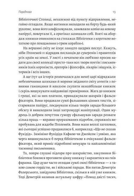 - Написана авторитетною дослідницею, яка глибоко вивчила тему історії книжок. Інформація подана багатою літературною мовою на межі з художнім текстом, тому читачу вона дає не лише цінні й знання, а ще й приносить естетичну насолоду.
