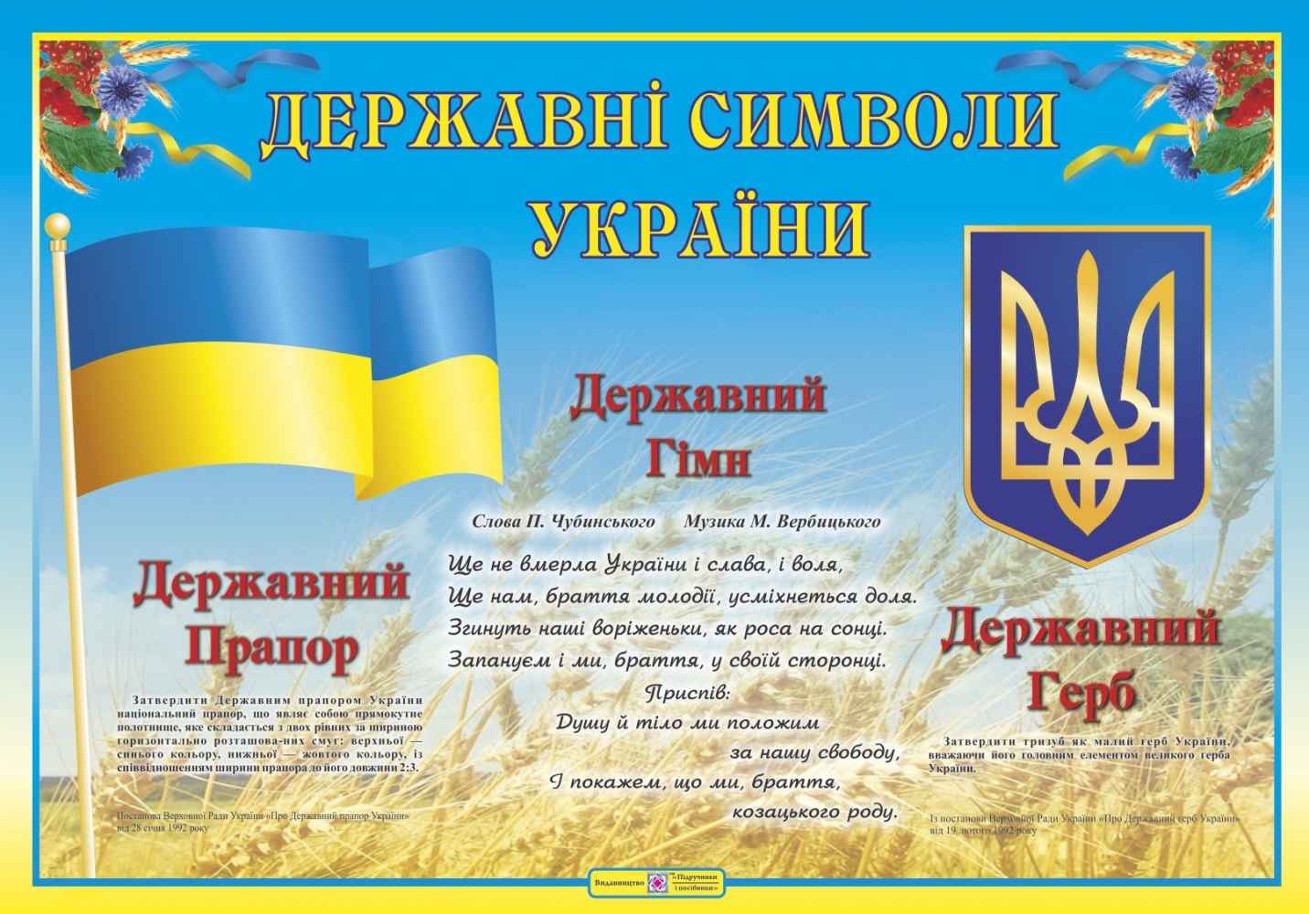 Державні символи України Плакат Нехай В. Підручники і посібники