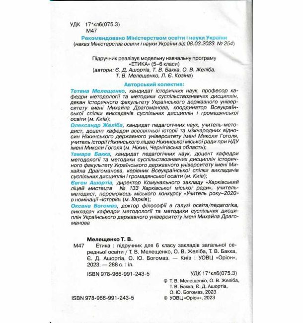Етика 6 клас. Мелещенко Т.В. Підручник (2024) НУШ