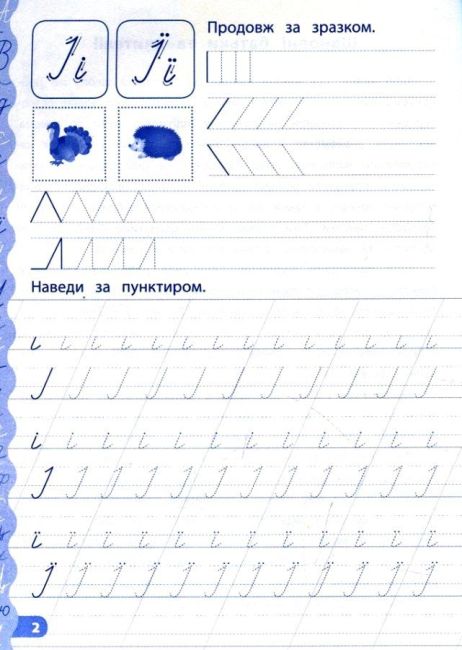Зошит Прописи із завданнями та наліпками спрямований на ретельну підготовку руки до письма, поступове знайомство з косою лінією та розвиток навичок каліграфічного написання літер.