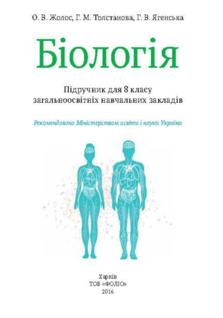 Підручник Біологія 8 клас Нова програма Авт: Жолос О. Толстанова Г. Ягенська Г. Вид-во: Освіта 15581