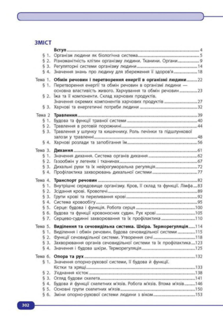 Підручник також демонструє механізми біологічних процесів, що відбуваються в організмі людини. Це дозволяє учням не лише вивчати факти, але й розуміти, як ці процеси взаємопов’язані і як вони забезпечують здоров'я та життєдіяльність. Для кращого сприйняття складних біологічних понять матеріали проілюстровані схемами, таблицями та іншими графічними засобами, що полегшує розуміння процесів та механізмів.