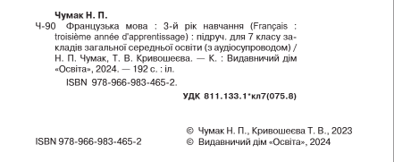 Підручник Французька мова 7 клас НУШ Авт: Н.П. Чумак Т.В. Кривошеєва Вид-во: Освіта 104350