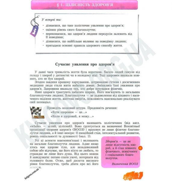 Підручник з Основ здоров'я для учнів 7 класу створено за Новою програмою. Зміст підручника спрямовано на розвиток життєвих навичок, сприятливих для здоров'я, безпеки і гармонійного розвитку учнів.