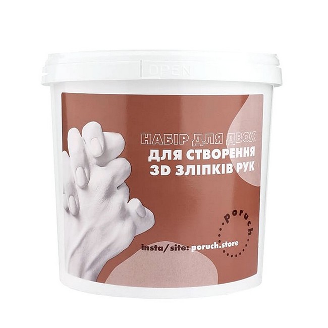 Цей набір ідеально підходить для створення зліпків однієї або двох рук дорослих людей. Завдяки цьому набору ви зможете зберегти на згадку унікальний момент, відтворивши всі деталі та текстуру шкіри.