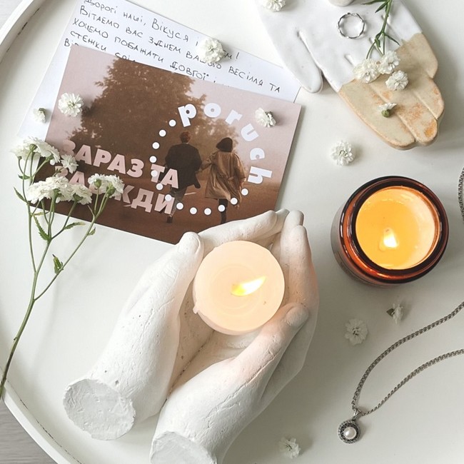 Зліпок в висоту 17-18 сантиметрів. На ньому ви побачите навіть маленькі деталі ваших рук: невеликі зморшки, вигини та прикраси, які були на руці в момент створення зліпка.