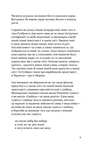 Поезії Ярини Чорногуз — це своєрідні листи з фронту, листи з передової, де ти не знайдеш опису бойових дій чи переліку звільнених територій. Це листи про біль від утрати загиблих побратимів та посестер, листи про буття на війні тут і зараз, про усвідомлення та прийняття власного вибору піти воювати, листи про те, як виглядатиме світ після всього цього болю, що розриває зсередини. Листи про те, як виглядає оборона твоєї присутності в цьому світі.