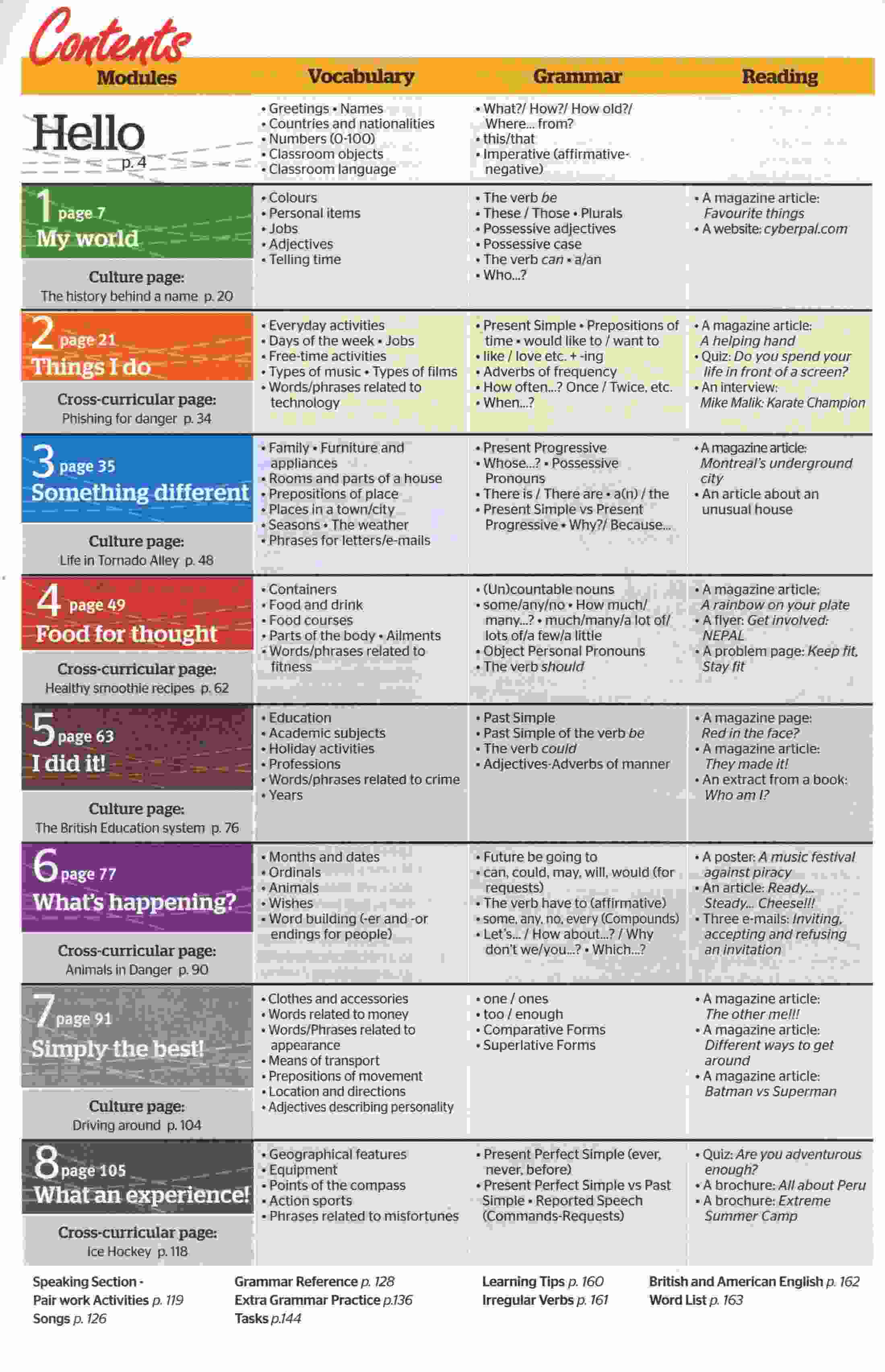 Course components: Student's book Full-colour Workbook including extra vocabulary and grammar section Interleaved Techer's Book Class CDs Teacher's Resource CD/CD-ROM Interractive Whiteboard Material Online Placement Test.