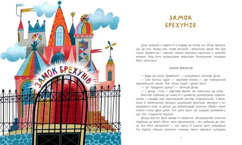 Кожен день Дінас починає з побрехеньок. Тож не дивно, що одного разу чудернацька карета відвозить малого бешкетника до замку брехунів. Хлопчик у захваті, адже все навколо потопає в розкоші, а компанія щасливих на вигляд дітлахів обіцяє нескінченні розваги. Та перше враження виявляється оманою, як, власне, і все у цьому замку. А ще тут постійно брешуть, що дуже дратує Дінаса й спонукає його до втечі. Та чи вдасться хлопчикові врешті дістатися додому й розказати всю правду про замок брехунів? Добра, повчальна і, головне, правдива історія від відомої литовської письменниці Вітауте Жилінскайте для дітей молодшого шкільного віку.