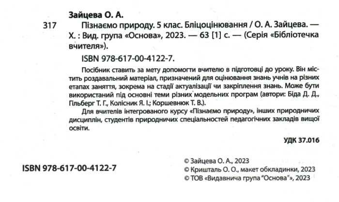 Бліцоцінювання Пізнаємо природу 5 клас НУШ Авт: О.А. Зайцева Вид-во: Основа 89684