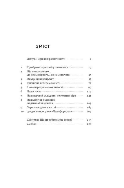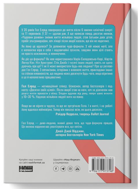 Автор безапеляційно заявляє, що за допомогою чудо-формули людина може здійснити будь-що. Звучить самовпевнено, але Гел Елрод знає, що каже. Ця формула допомогла йому не тільки вибудувати бізнес, оговтатися після фінансової кризи, а й стати на ноги після аварії з 11 переломами й після рідкісної форми раку. Ба більше: нею користувалися (чи користуються) Генрі Форд, Томас Едісон, Опра Вінфрі, Ілон Маск, Білл Ґейтс і багато інших людей.