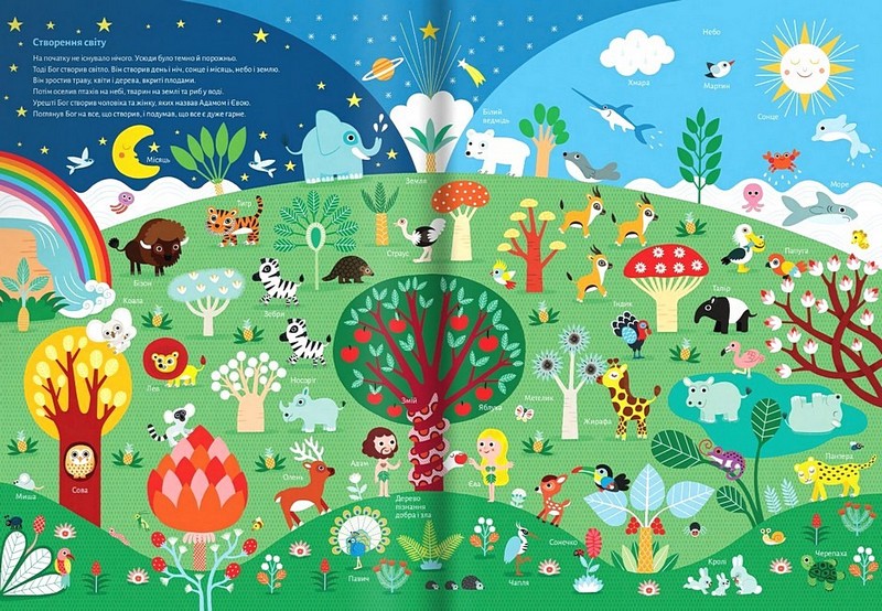 Біблія в картинках розповідає дітям про найвидатніші події Старого і Нового Завіту. Також вони дізнаються більше про навколишній світ і його мешканців, вивчать нові слова й розглядатимуть майстерні ілюстрації з безліччю цікавих деталей.