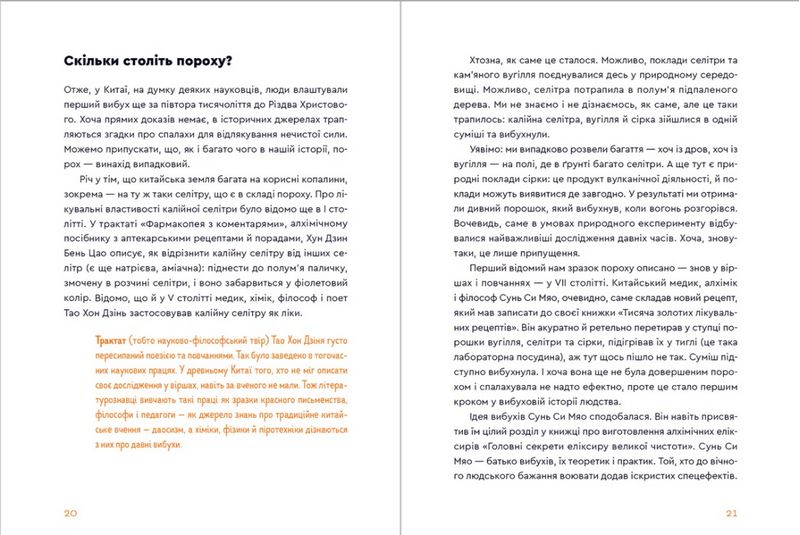 Хочеш пройти шлях від винайдення пороху і грецького вогню до динаміту і ядерних бомб – гортай цю книжку. Буде захопливо, бо це справді вибухова історія.