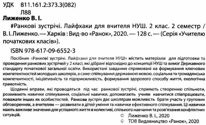 Ранкові зустрічі Лайфхаки для вчителя 2 клас 2 семестр НУШ Авт: Лиженко В.І. Вид-во: Ранок 31903
