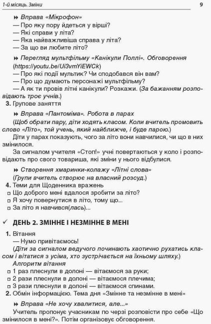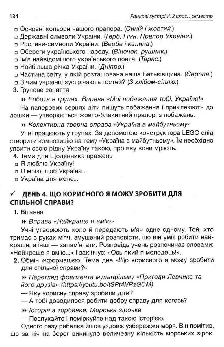 Щоденні вітання, цікаве подання матеріалу, групова робота, ігри та завдання розвивального характеру допоможуть учителеві продовжити роботу щодо створення класної спільноти, урізноманітнити уроки, сприятимуть розвитку навичок спілкування, логічного мислення молодших школярів, їхньої творчої уяви, самостійності, формуванню всебічно розвиненої особистості громадянина і патріота, здатного до інновацій.