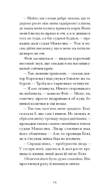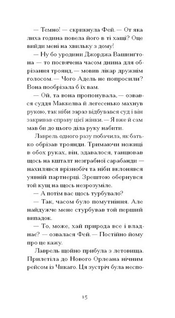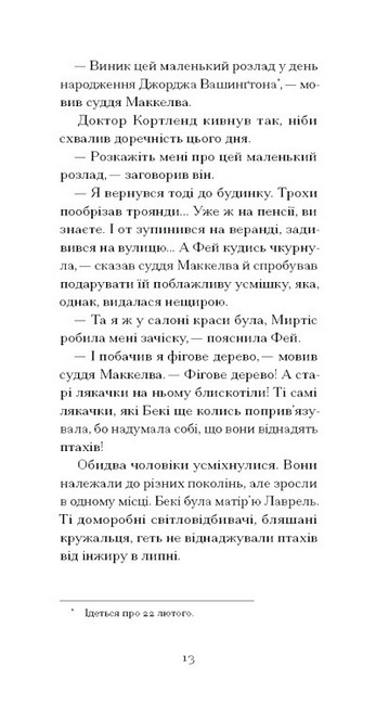По смерті судді Маккелви спадок родини лишається на відкуп його другій дружині, легковажній матеріялістці Фей, на понад 30 років молодшій за спочилого в Бозі, та на плекання нещодавно овдовілій донці Лаврель, яка прагне лише зберегти пам’ять роду й традиції родини. Як зарадити собі після втрати, коли ти лишаєшся сам, а довкола лише лицеміри й позери? Чому замість боротися за спадщину, Лаврель вдається до порядкування в саду? Й невже чорний голкохвіст, який залетів до осиротілого будинку, і справді провіщає лихо?