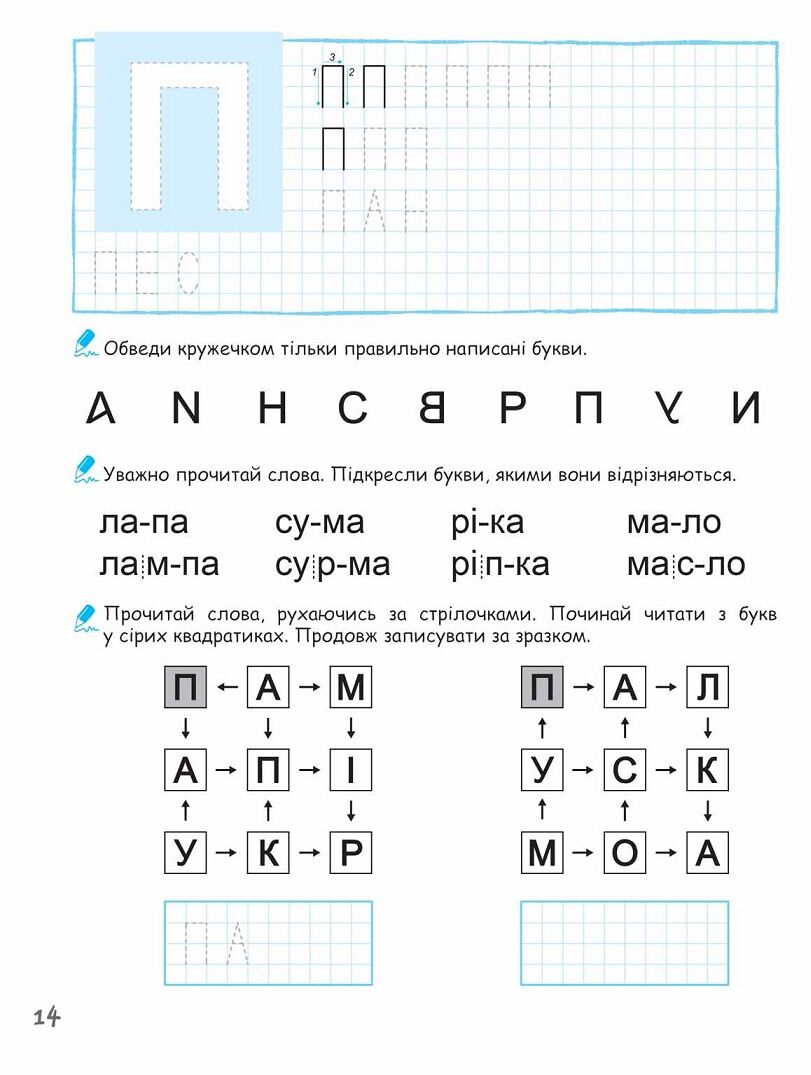 Використовуючи цей посібник разом із «Букварем» В. В. Федієнка (чи з іншими букварями), ви зможете: - забезпечити комплексне навчання дитини читання й письма — двох базових компонентів писемного мовлення; - дати дитині змогу здійснювати усвідомлено-аналітичне вивчення рідної мови. Дитина не просто навчиться читати й писати, але зможе розрізнювати такі поняття, як звук, буква, склад, наголос, види слів, структура слів та речень тощо, та оперувати ними; - зробити заняття цікавими й різноманітними завдяки вдало дібраним вправам, чудовому ілюстративному та мовленнєвому матеріалу. А ще ви зможете запропонувати дитині нові вправи, самостійно розроблені на базі унікальної добірки типових завдань, наведених у цьому посібнику.