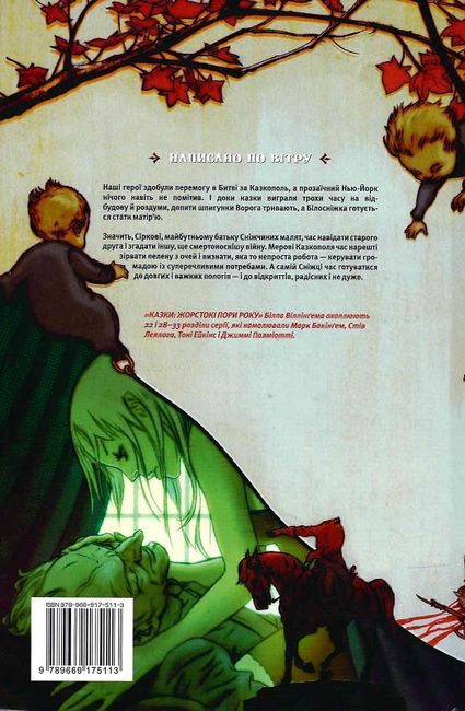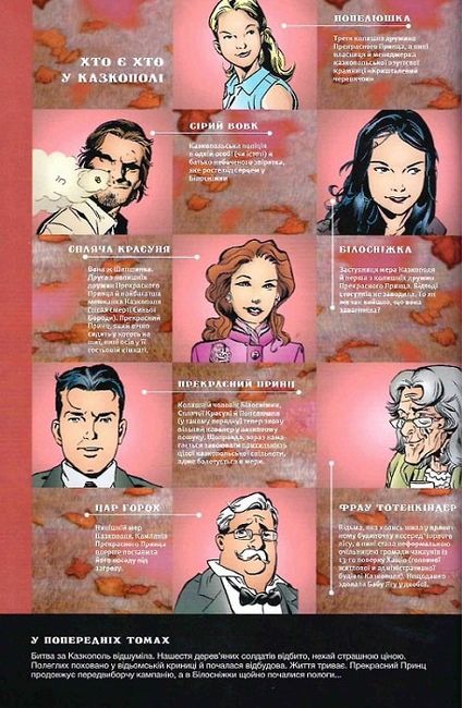 Наші герої здобули перемогу в Битві за Казкополь, а прозаїчний Нью-Йорк нічого навіть не помітив. І доки казки виграли трохи часу на відбудову й роздуми, допити шпигунки Ворога тривають, а Білосніжка готується стати матір’ю.