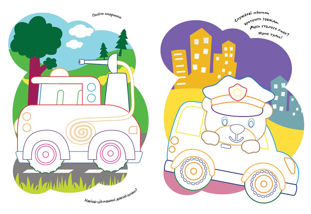 Книжки-розмальовки цієї серії містять чудові малюнки з кольоровим контуром, що є підказкою для дитини під час вибору фарб. Гарні ілюстрації з перших хвилин привертають увагу малюка і дарують йому позитивні емоції та гарний настрій! У процесі розфарбовування малеча навчиться розпізнавати кольори. Також дитині пропонуються цікаві завдання і віршики, що сприяють її розвиткові. • Розфарбовуй зображення в яскраві кольори. • Вигадуй цікаву історію про персонажів! • Весело і з користю!