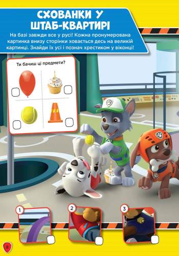 Щенячий Патруль Книжка творчого малювання Слідами Патруля Nickelodeon Ранок. В штаб-квартирі щенячого патруля в бухті пригод, як завжди, готові діяти! Тебе чекають яскраві сторінки, веселощі та ігри ... Знаходь відмінності і тренуй уважність, малюй і розвивай здібності, розфарбовуй за номерами, повторюй малюнки із зразками.