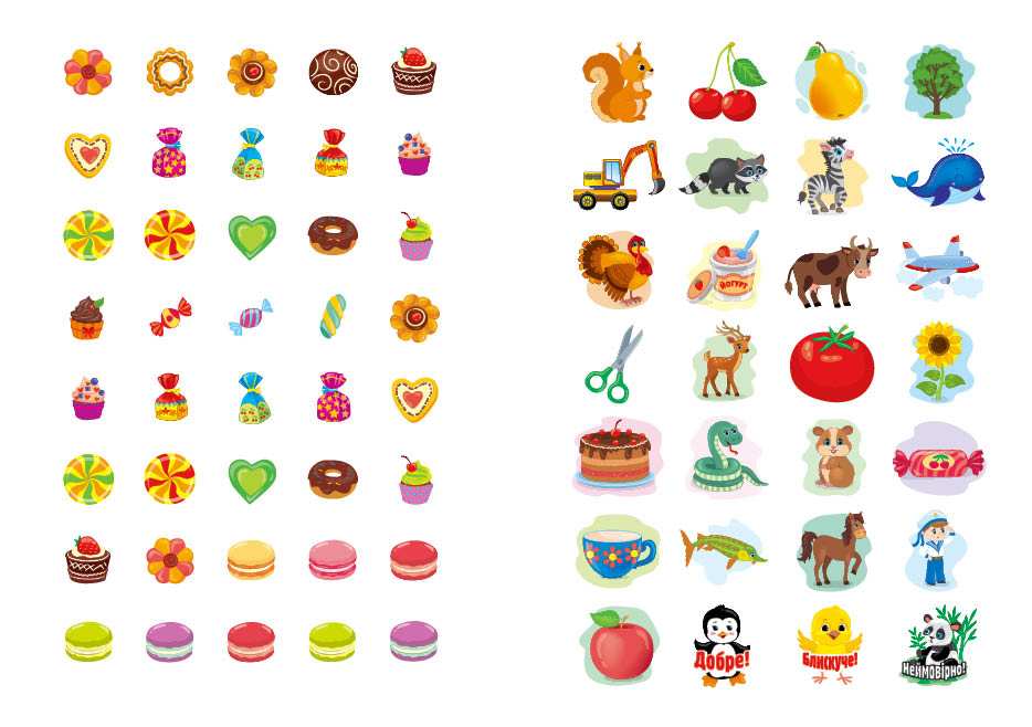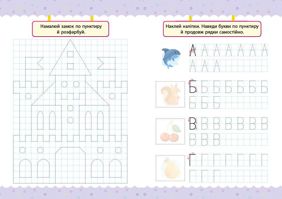 Окремим додатком до тестів будуть кольорові прописи, що допоможуть дитині навчитися наводити по пунктиру лінії, фігури, візерунки та букви.