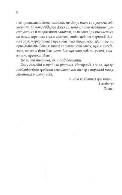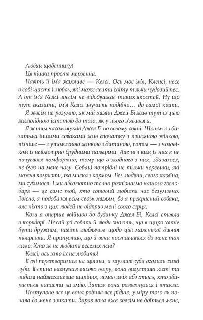 А ще Кленсі веде щоденник, в якому розмірковує про щастя. Його життя було б зовсім безтурботним, якби не заклятий ворог - кішка на ім’я Келсі. Зрештою Кленсі приймає важке рішення - позбутися кішки. Із цього моменту на пса чекає круговерть подій, які розгортатимуться у несподіваних напрямках.