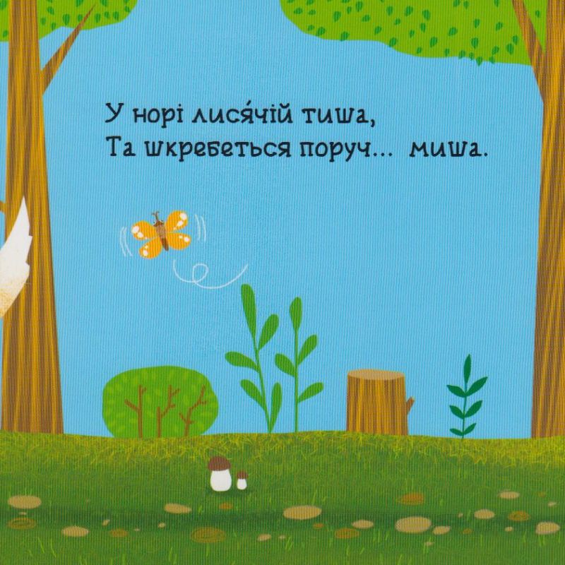 Видання ознайомить малят з різними лісовими тваринами. У розвивальній книжці-грі «У лісі», яка містить рухомі елементи для занять із дітлахами 2+, на кожній сторінці є подвійний висувний елемент з барвистими ілюстраціями, які доповнюють коротенькі віршики Сергія Цушка та Василя Федієнка про лісових тварин. Такі видання захоплять будь-якого малюка, адже в них — веселі малюнки, чудові вірші-загадки, а головне — кожна сторінка має свій секрет-відгадку. Інтерактивні елементи сприятимуть розвитку дрібної моторики, пам’яті та уваги дошкільнят.