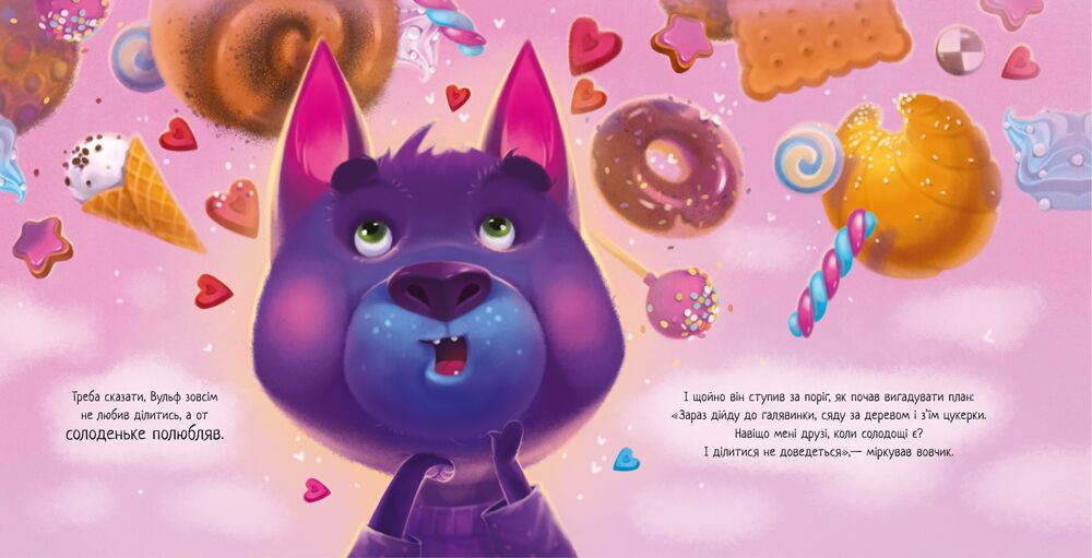 Давай-но дружити! Зворушливі книжки Анастасія Меренкова Ранок. Наклад книжки надрукований за кошти гранту інституційної підтримки для видавців. Це історія про маленьке вовченя. Одного разу мама дала Вульфові дві цукерки — для нього та для його нового друга, якого вовченяті ще тільки треба було знайти. Та малюк не розумів, навіщо йому друзі, з якими доведеться ділитися цукерками. Адже ділитися Вульф не любив, а солодощі любив дуже! Як же вовченя знайде друга, якщо з жадібними дружити ніхто не хоче? Може, не в цукерках щастя?