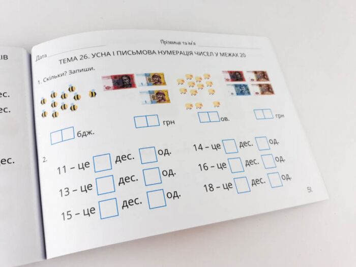 Практичні завдання для діагностики предметних компетентностей та формувального оцінювання – це зошити, які мають зручний формат для перевірки рівня розуміння дитиною кожної теми, що вивчаються за програмою НУШ. Зміст вправ відповідає чинним типовим освітнім програмам математичної освітньої галузі та всім підручникам з математики для 1 та 2 класу. Посібники призначені для роботи на уроках при ознайомленні з новими математичними поняттями, для вправляння – формування умінь та навичок, предметних та ключових компетентностей. Запитання, завдання, вправи розвивають навички самостійної навчальної діяльності, критичного мислення. Зошити допоможуть організувати диференційоване навчання, контроль, діагностику, формувальне оцінювання та корегування освітнього процесу. Посібник можна використовувати для опитування кожного учня чи для діагностики окремих учнів класу. Має відривні картки.