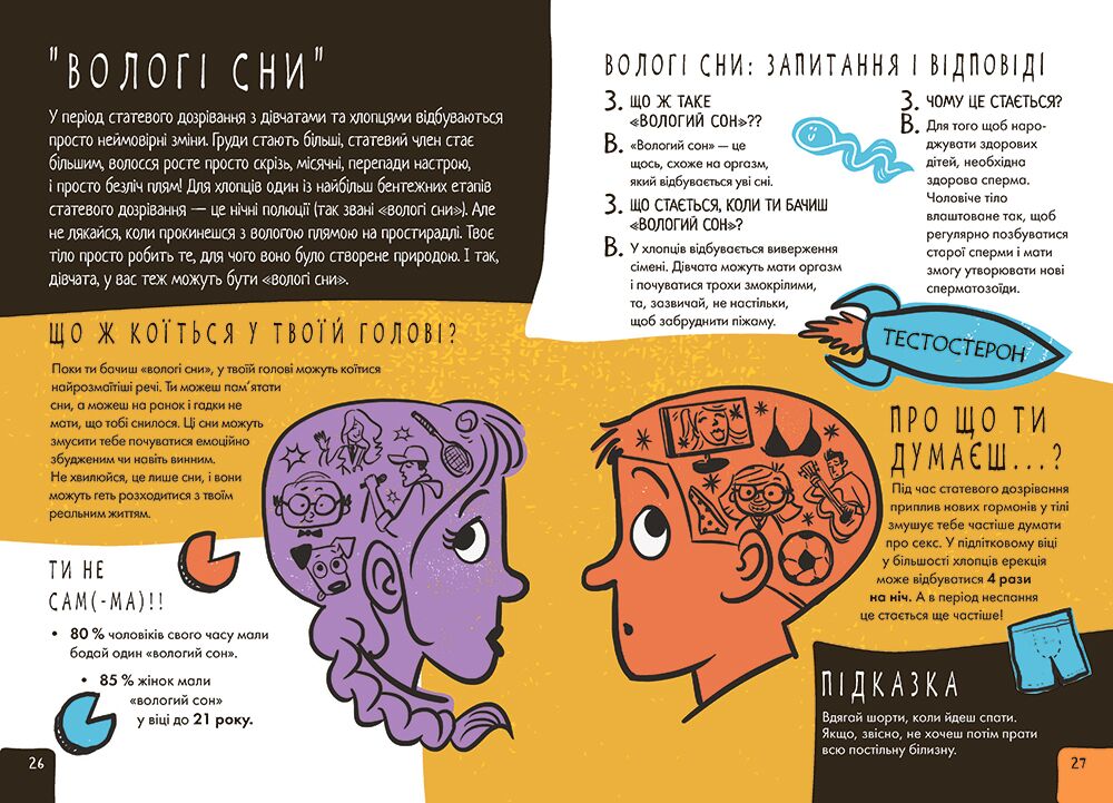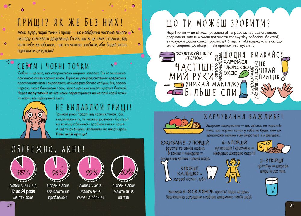 Є питання, які не дуже зручно обговорювати з батьками і не надто приємно — з друзями. Про зміни форм і розмірів, про волосся, перші місячні, про потіння, «вологі» сни, прищі… Так, це все — перехідний вік. Проте жодних жахіть!