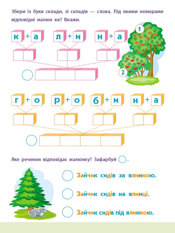 Із зошитами серії "Читання до школи"; дитина крок за кроком опановуватиме вміння читати. Дошкільник вивчить букви, повправляється в читанні складів та навчиться збирати їх у слова. А насамкінець потренується читати речення та навіть невеличкі тексти.