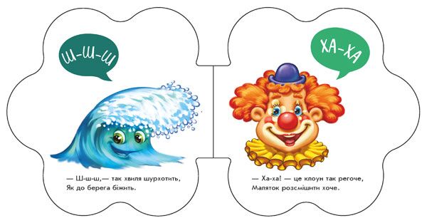Книжки серії «Перші звуки» допоможуть познайомити дитину з оточуючим світом. Ваш малюк дізнається як говорить віслючок, як співає півник, як стукають часики ...У них ви знайдете добрі, яскраві ілюстрації та чудові віршики Ірини Сонечко. Ці книжки дуже яскраві зі сторінками незвичайної форми, які зручно гортати навіть найменшеньким.