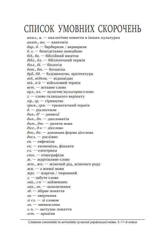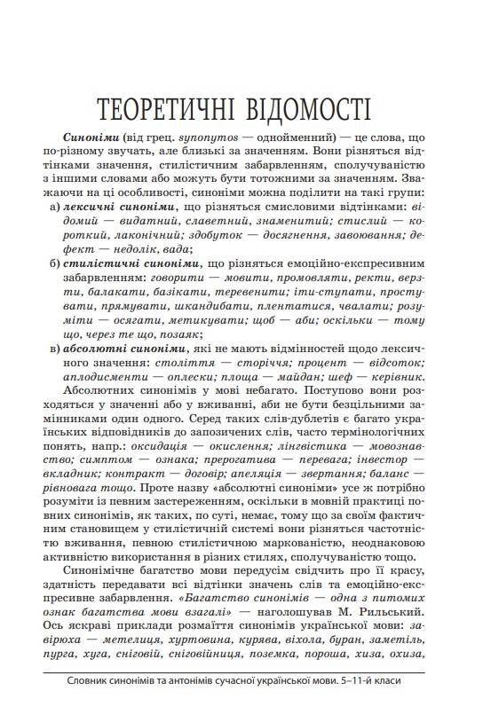 Словник синонімів та антонімів сучасної української мови 5–11-й класи НУШ Богданова О. Основа 41411