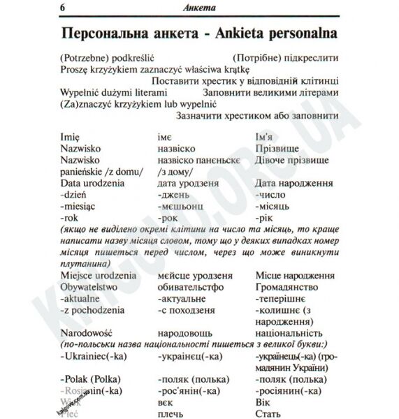 Книга предназначена передусім для громадян України та українців інших держав, які виїжджають за кордон, а також для школярів, студентів і всіх, хто вивчає польську мову.