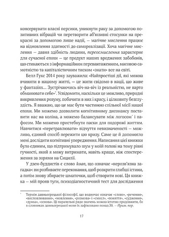 \nЦе дотепний і влучний путівник нестабільним світом, у якому ми намагаємося знайти опору, творячи власну «магію» в буденності. Прониклива й неймовірно актуальна книжка для всіх, хто хоче краще зрозуміти, як жити в добу постійного «надто».