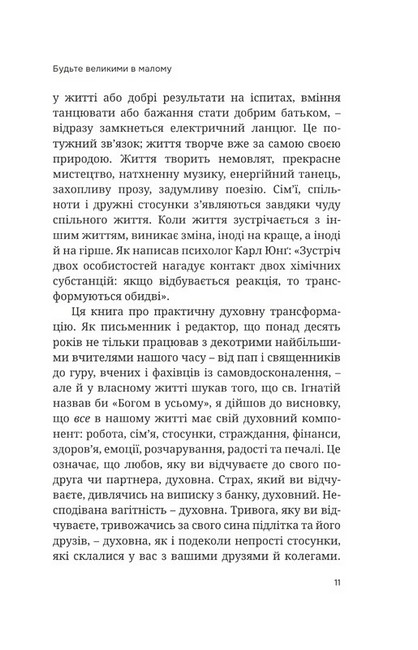 Якщо ви думаєте що духовного життя у вас не так багато, щоби влаштувати у ньому генеральне прибирання, автор уже з перших сторінок продемонструє, що воно насправді всюди: у роботі, сім'ї, стосунках, фінансах, стражданнях, радощах та печалях. Ґері Дженсен не закликає змінити все одразу, натомість показує, як роблячи маленькі кроки у напрямку змін, можна досягти чогось, що межує з дивом.