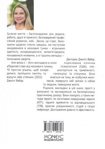 Докторка Джилл Вебер, ліцензована клінічна психологиня (США), багато років консультує з цієї проблематики. Свій багатоманітний та успішний досвід вона підсумувала в книзі «Подолай стрес від мозкового туману. 10 простих рішень, щоб зосередитися, поліпшити пам’ять та відчути себе стійким» (2022).