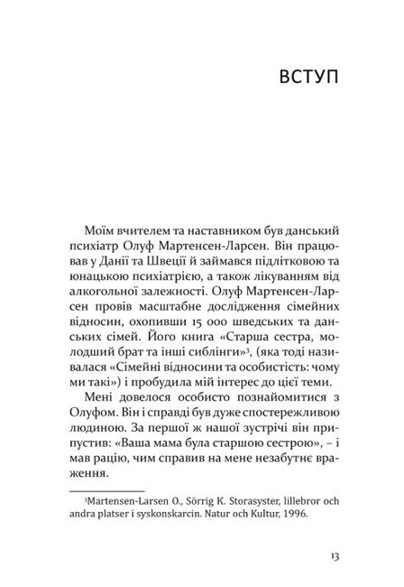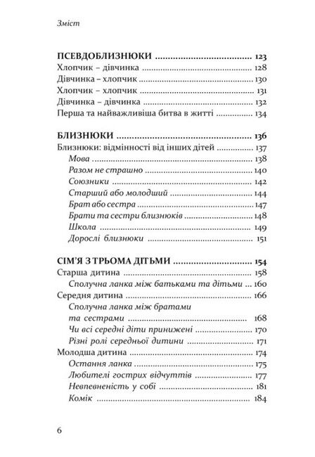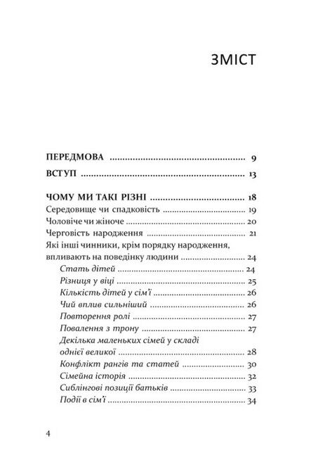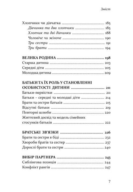 Вважають, що старші діти повинні опікуватися молодшими, а молодші — допомагати старшим. Єдина дитина в сім’ї, як багато хто впевнений, лінива та примхлива. Звідки беруться ці уявлення та чи мають наукову основу? Авторка книги, шведська психологиня, багато років присвятила вивченню психології дітей, які живуть у багатодітних сім’ях. У книзі вона описує типи сестер та братів, на які умовно можна поділити дітей за порядком їх народження, пропонуючи на основі багатого практичного та теоретичного матеріалу задуматися про цю маловивчену в психології проблему.