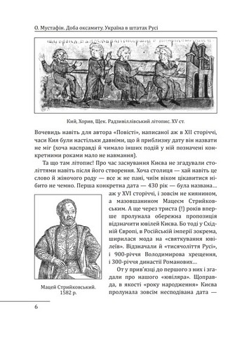 У своїй новій книжці Олексій Мустафін згадує добу, коли нашу країну ще іменували Руссю і правили нею князі та королі, що вбиралися — як і належить середньовічним монархам — в хутро й оксамит. Добу, про яку тривалий час згадували лише «наполовину», адже за радянською версією історії самостійний розвиток держави, заснованої Володимиром та Ярославом, раптово обривався в середині XIII сторіччя, а наступних наших володарів оголошували «загарбниками» та «поневолювачами». Та й українські автори зазвичай більше цікавилися козацтвом та Гетьманщиною — ніби їхня історія не була продовженням історії Русі. Тим цікавіше відкривати ці сторінки нашої минувшини сьогодні — коли Україна повертається до кола європейських народів, в якому перебувала і за часів середньовіччя, і за нового часу. Та й не лише Європою обмежувалися її зв’язки. Адже перший письмовий документ, складений у Києві, був знайдений... в архіві Каїра. Критичний, іронічний, але безумовно зацікавлений погляд на вітчизняну історію пропонує своїм читачам автор.