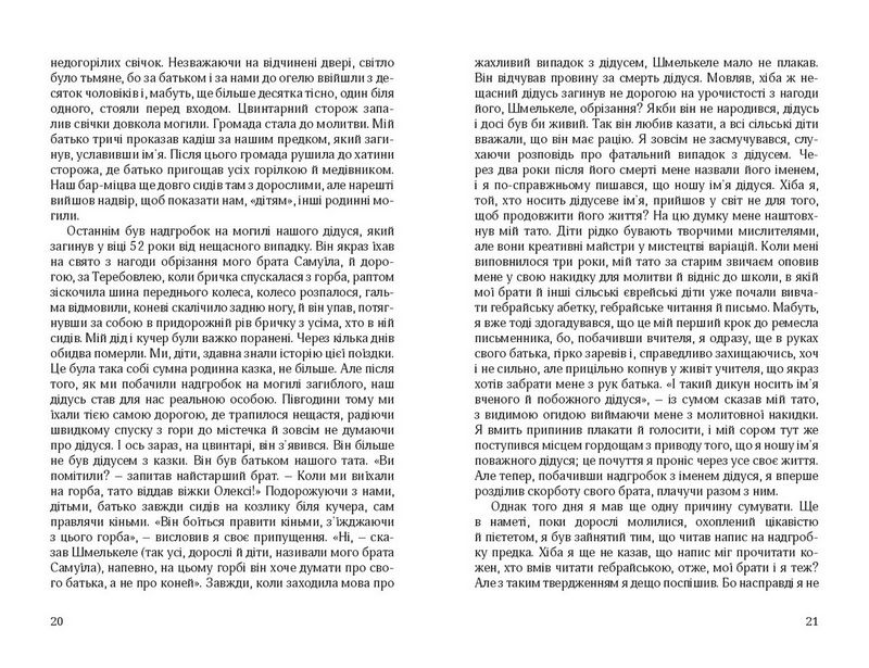 У чарівній скриньці пам’яті Соми Морґенштерна чимало скарбів, якими він ділиться на сторінках своєї автобіографії. Батько автора був управителем фільварків у кількох селах на Поділлі. У 1904–1912 роках Сома Морґенштерн навчався у польській гімназії Тернополя. Тому тлом цієї книжки є сільське середовище Поділля в кінці ХIX – на початку ХХ століть, а також життя Тернополя поч. ХХ століття. Це сповнені любові, мудрості й гумору історії, головними героями яких є родичі й односельчани автора: українці, євреї, поляки. Це розповіді про великі й дрібні події того часу: перший селянський страйк в одному із сіл, прокладання залізничної колії, перший політ аероплана над Тернополем, приїзд до Тернополя сенсаційного цирку Буффало Білла тощо. Книжка Соми Морґенштерна стане справжньою знахідкою не лише для істориків і краєзнавців, але й для широкого кола читачів.