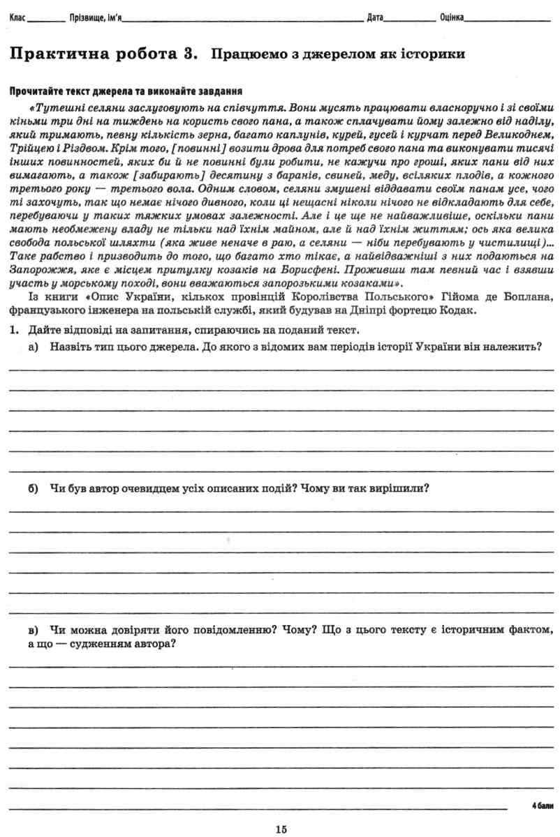 Укладений відповідно до нової навчальної програми з історії, затвердженої Міністерством освіти і науки України. Мета створення зошитів не тільки допомогти вчителеві провести всі тематичні роботи протягом року, але й у ході вивчення теми завдяки самостійним роботам виявити рівень підготовки учня з пройденого матеріалу.